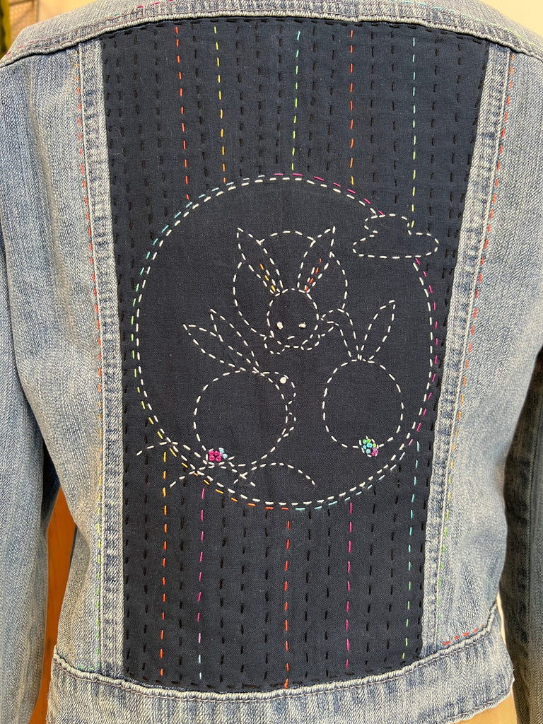 This is a pre-loved denim jacket, size L. Rabbits are considered lucky in Japan, so you will feel luck coming your wa...